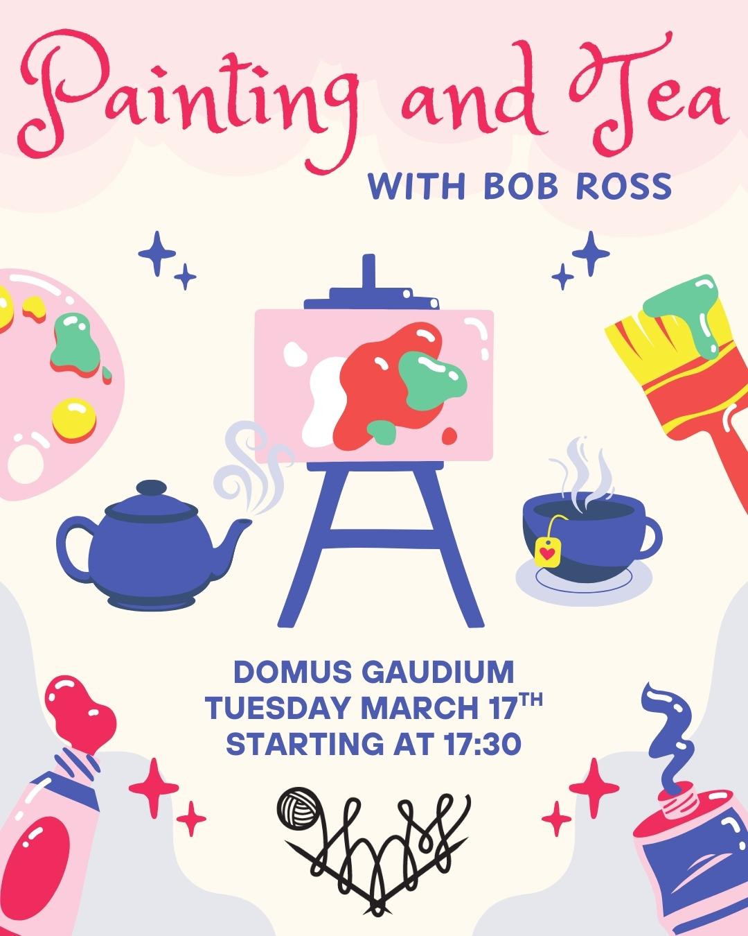 Join us for an artsy evening of sipping tea and following a Bob Ross painting tutorial! Liity rennon taiteelliseen joukkoomme nauttimaan teestä ja seuraamaan Bob Rossin maalaustutoriaalia!