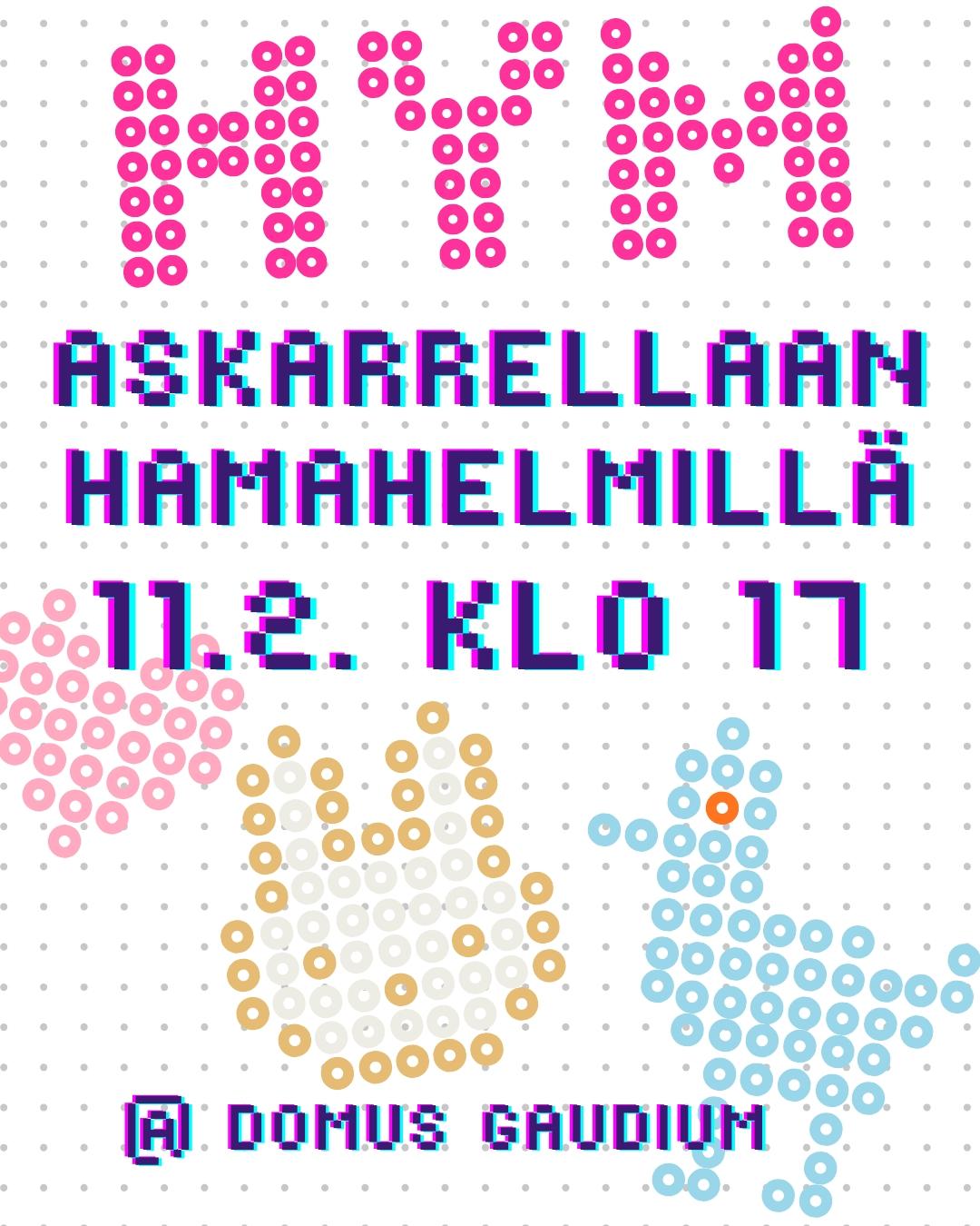 Tule toteuttamaan luovuuttasi hamahelmillä, tai luomaan hauskoja koristeita valmiiden mallien pohjalta. HyM tuo paikalle kaikki tarvittavat välineet ja materiaalit. Tapahtuma on ilmainen jäsenillemme ja muilta pyydämme 3€ osallistumismaksun kattamaan tapahtuman kuluja.